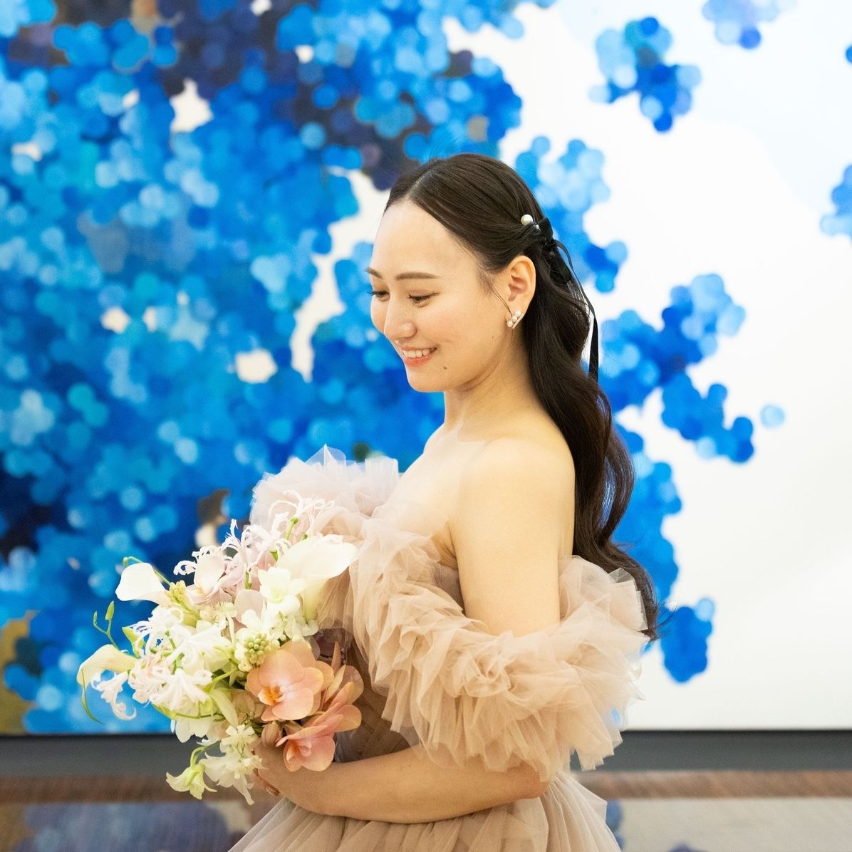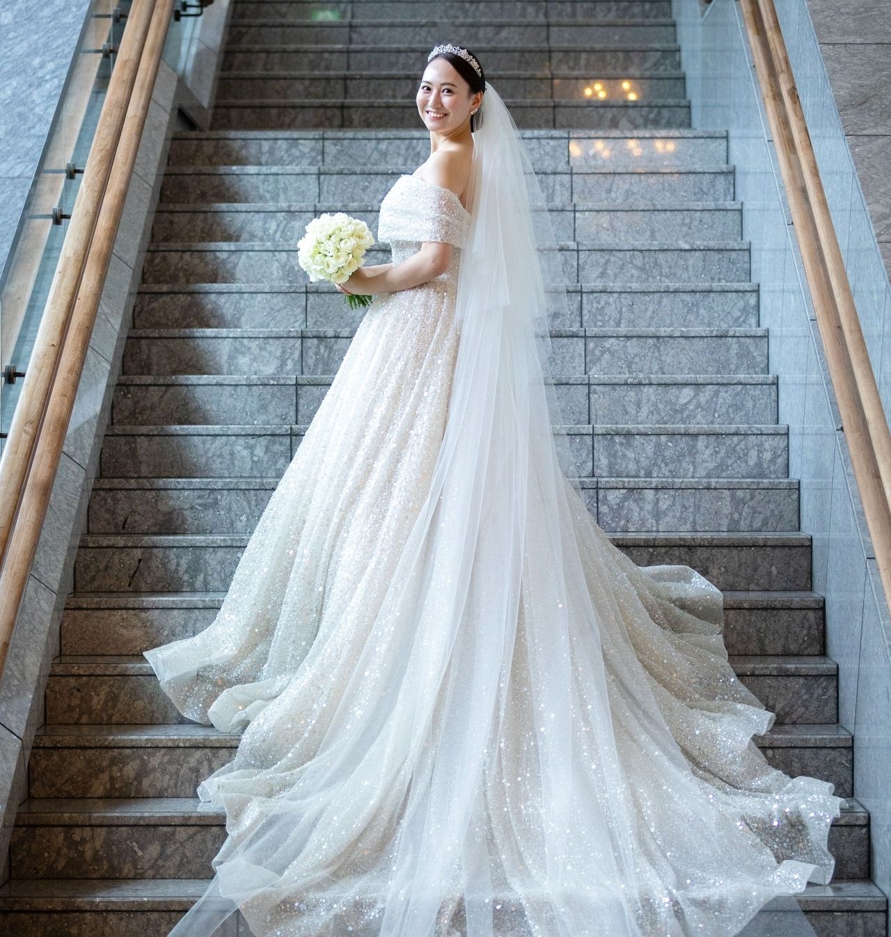 ウェディングドレスのショルダーをチュール素材に変えたので、合わせてチュールを選びました!