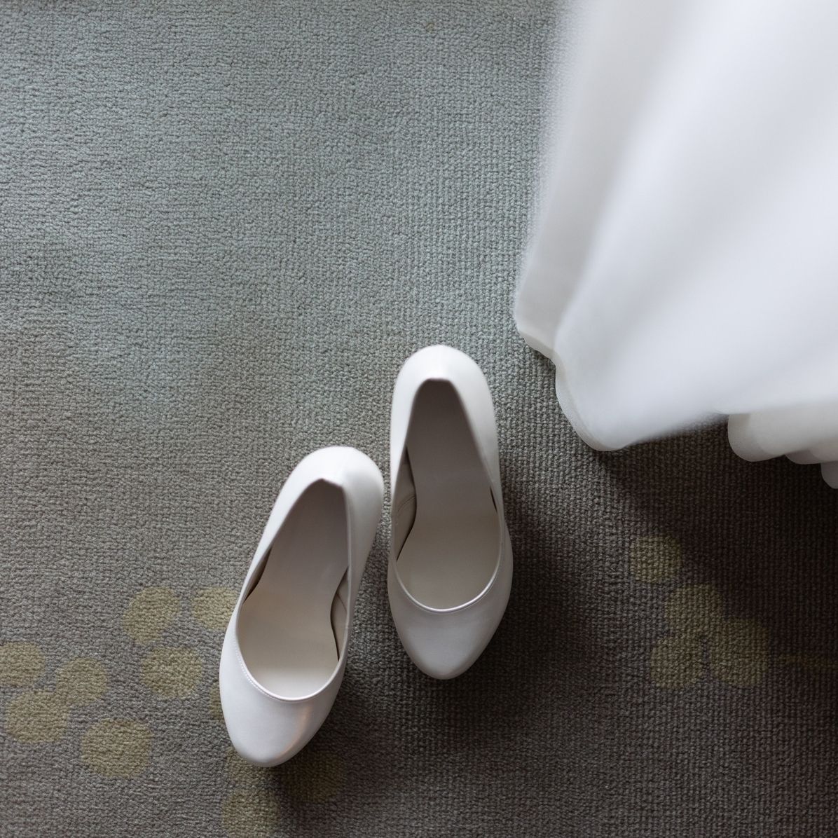 式場からシューズのプレゼントがありましたが、身長が低いこともあり12cmヒールを履くことになり、当日はレンタルしたHatsuko endoのシューズを着用しました。