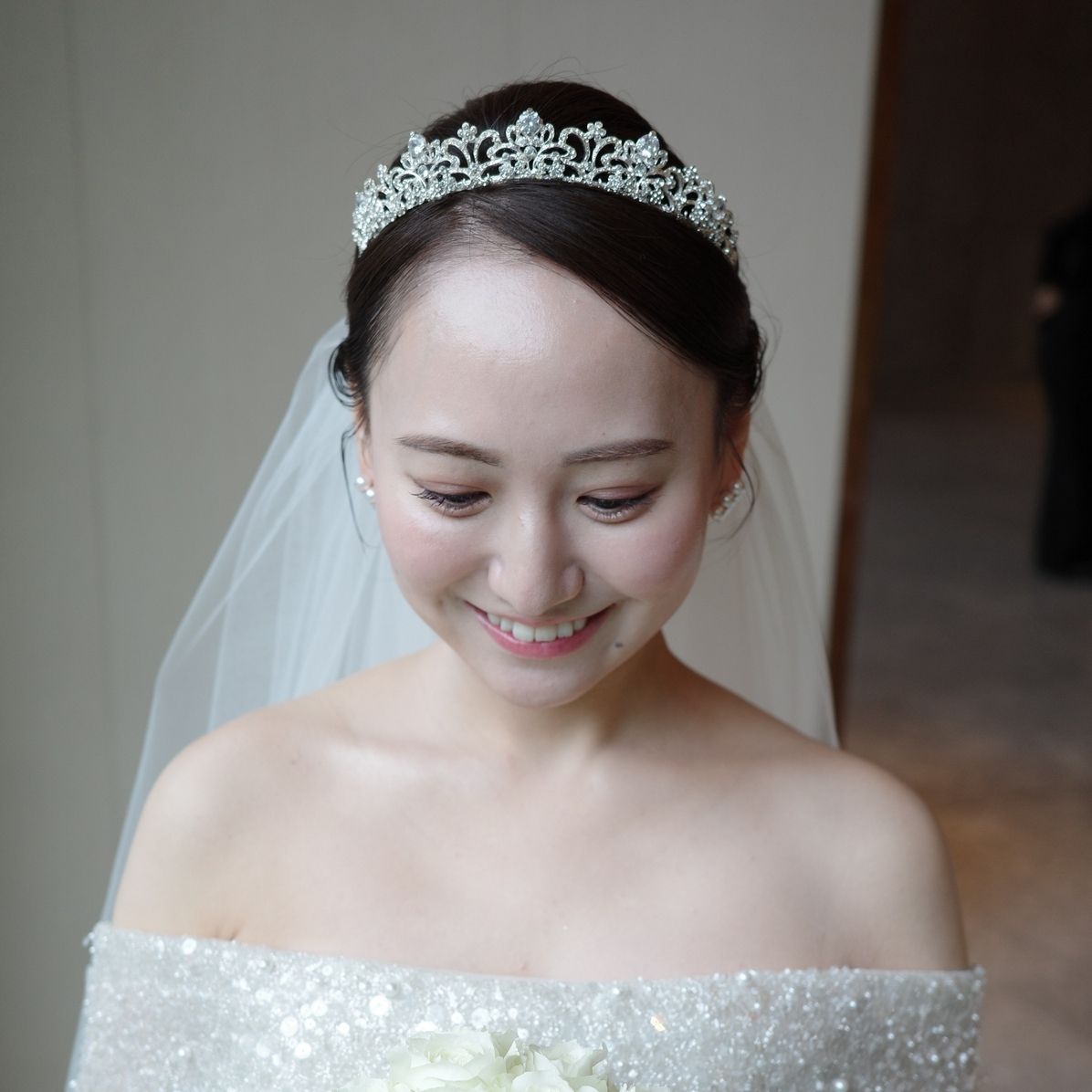 挙式は絶対にティアラをつけたかったので、ホワイトゴールド系のティアラにしました!