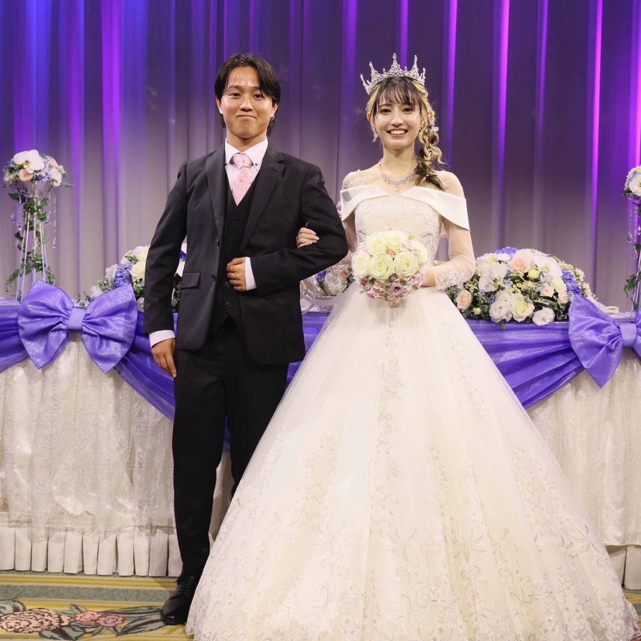 前撮りで取り入れたお花が可愛すぎたので、こちらでも取り入れてもらい、さらに華やかさをプラスしました。