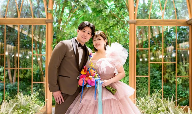 ふたりとも自然が好きで“木の温もりやグリーンに囲まれた空間で誓いたい”という思いがあったので、まさに理想通りのチャペルに一目惚れして決めました。
