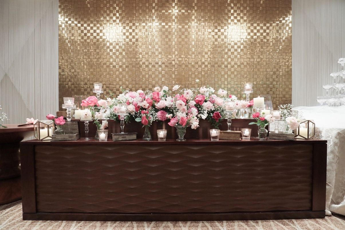 濃淡のあるピンク×白で、お花がハート型になるようにまとめてもらいました。