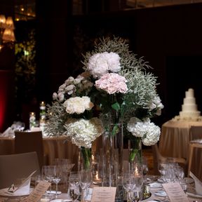 フローリストは提携先のLIFE DECO TOKYOさんにお願いしており、何パターンかテーブルの配置と合わせて作ってくださり、また人数によってテーブル数が変わるのでそこも配慮していただきました。