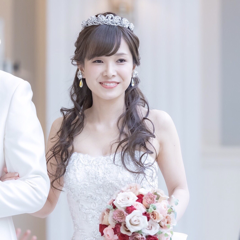 披露宴はロイヤルウエディングイメージで品のあるハーフアップ