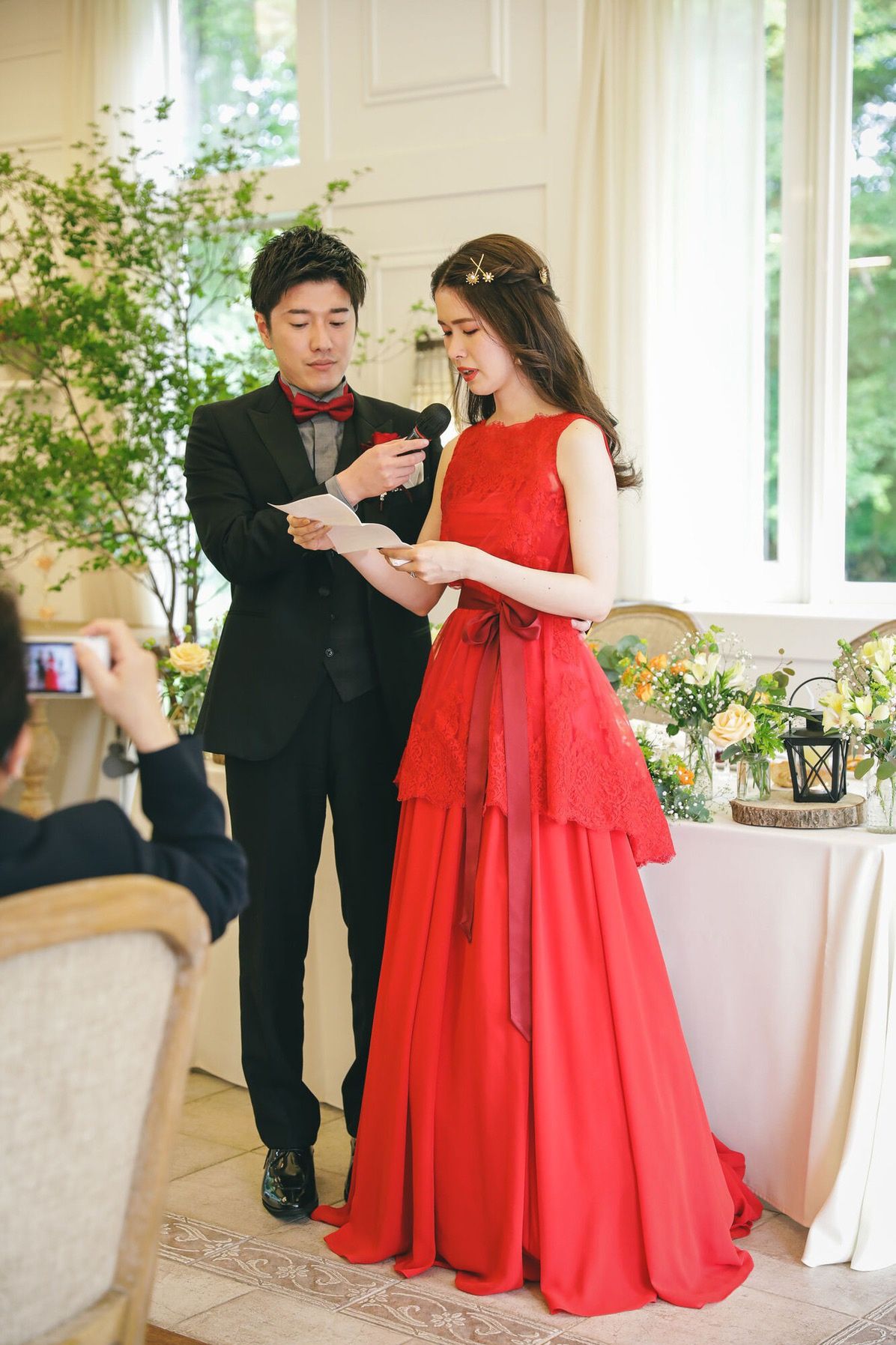 映画の「アバウトタイム」が好きで、お色直しで赤いドレスを着たいなと思っていました。(ちなみに、ブーケはアバウトタイムそっくりになるようオーダーしました)