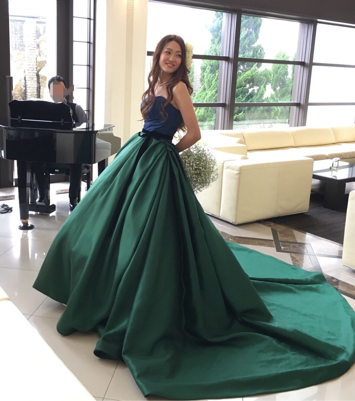 CDは、緑と青のバイカラードレス。一目惚れで選びました♡