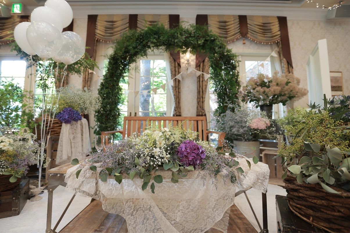 グリーンメインで派手な花や色は使わずナチュラルなテイストにしました。