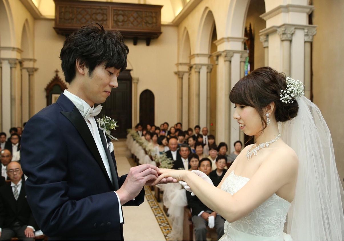 椅子やパイプオルガン、スタンドグラスなど歴史ある本物を使われていて、とても重厚感のある神聖な挙式になりました。