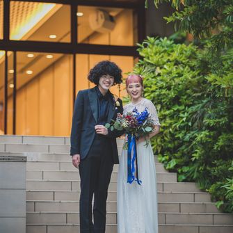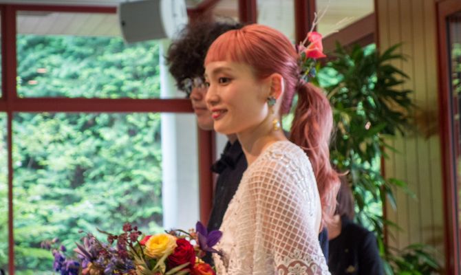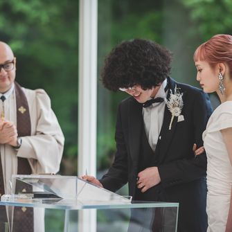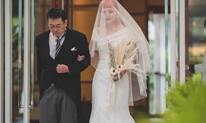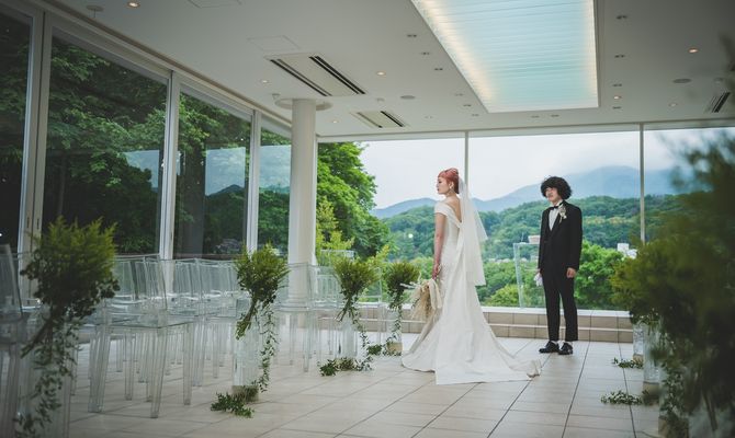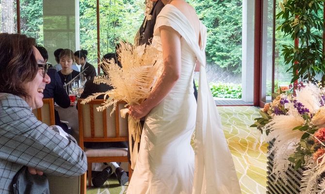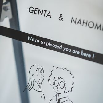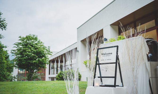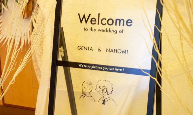 テーマは「感謝を伝える式」でした。二人がお世話になった先輩方や同僚、友人を招き、久しぶりに会う同窓会のような感覚になればいいなと席次を考え、話す時間が取れるようあえて余興などを無くしました。みんなと話したり距離がない式にしたいなと、ウェルカムスペースに新郎新婦で挙式前にサプライズで登場しました。