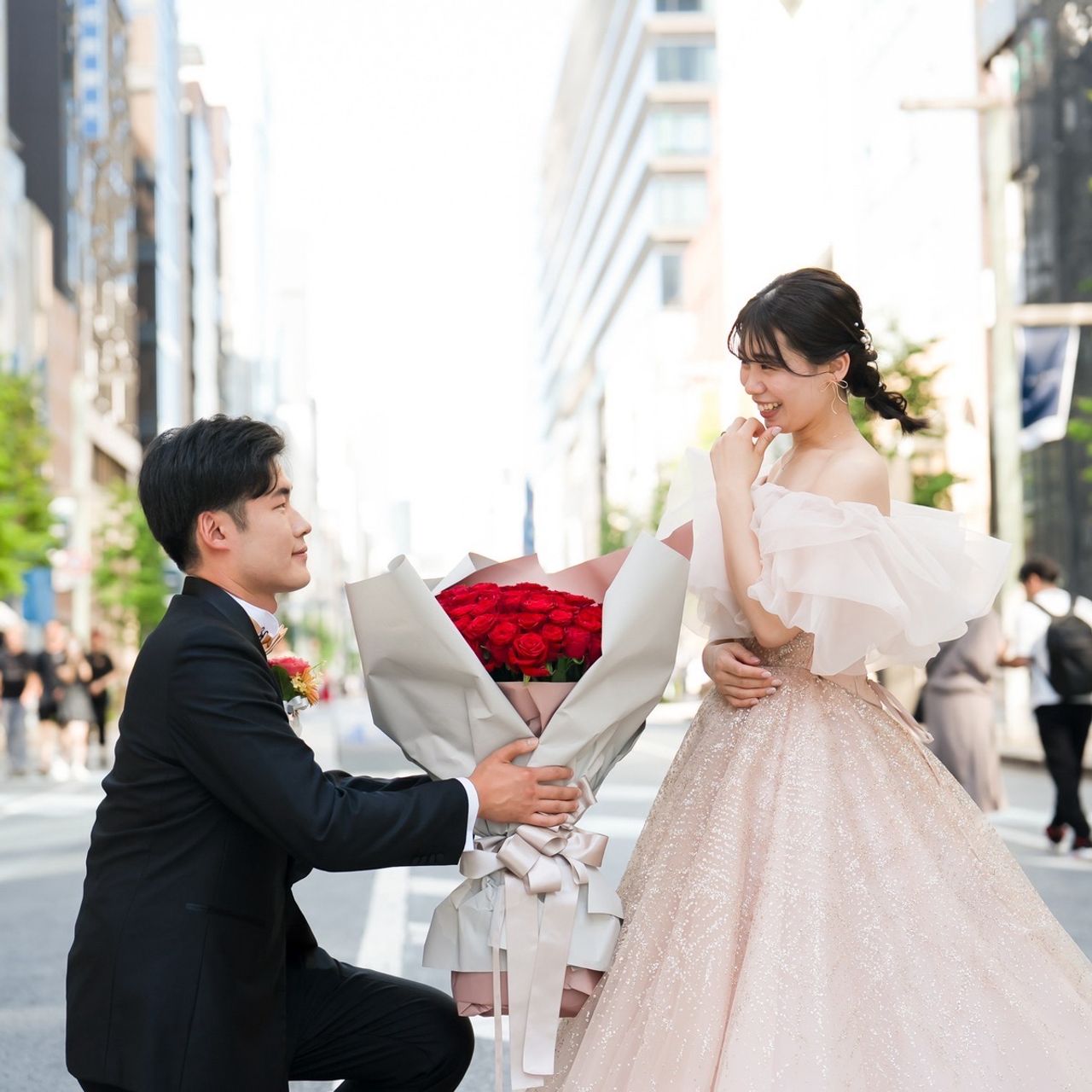 披露宴後には、通りの真ん中で写真を撮っていただき、通りすがりの方々から自然に祝福してもらえたことは、他ではなかなか味わえない体験として心に残っています。