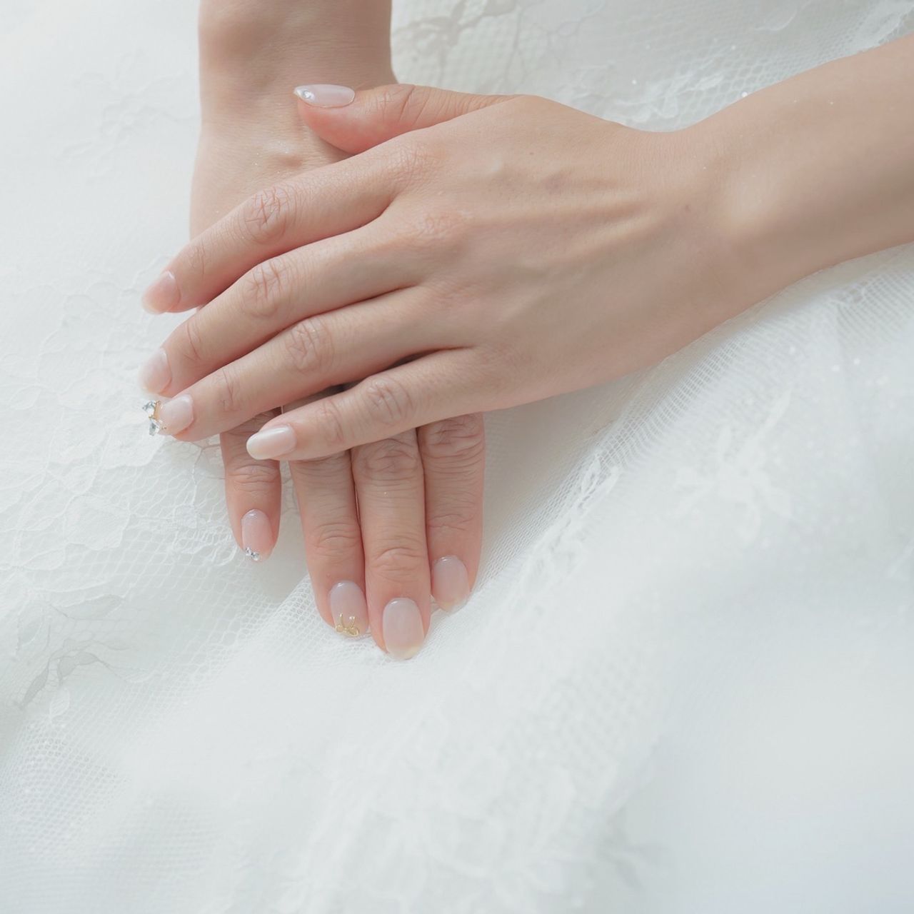 ベースは目立たないカラーを選び、さりげないアクセントパーツを加え、控えめながらも華やかさを演出しました。