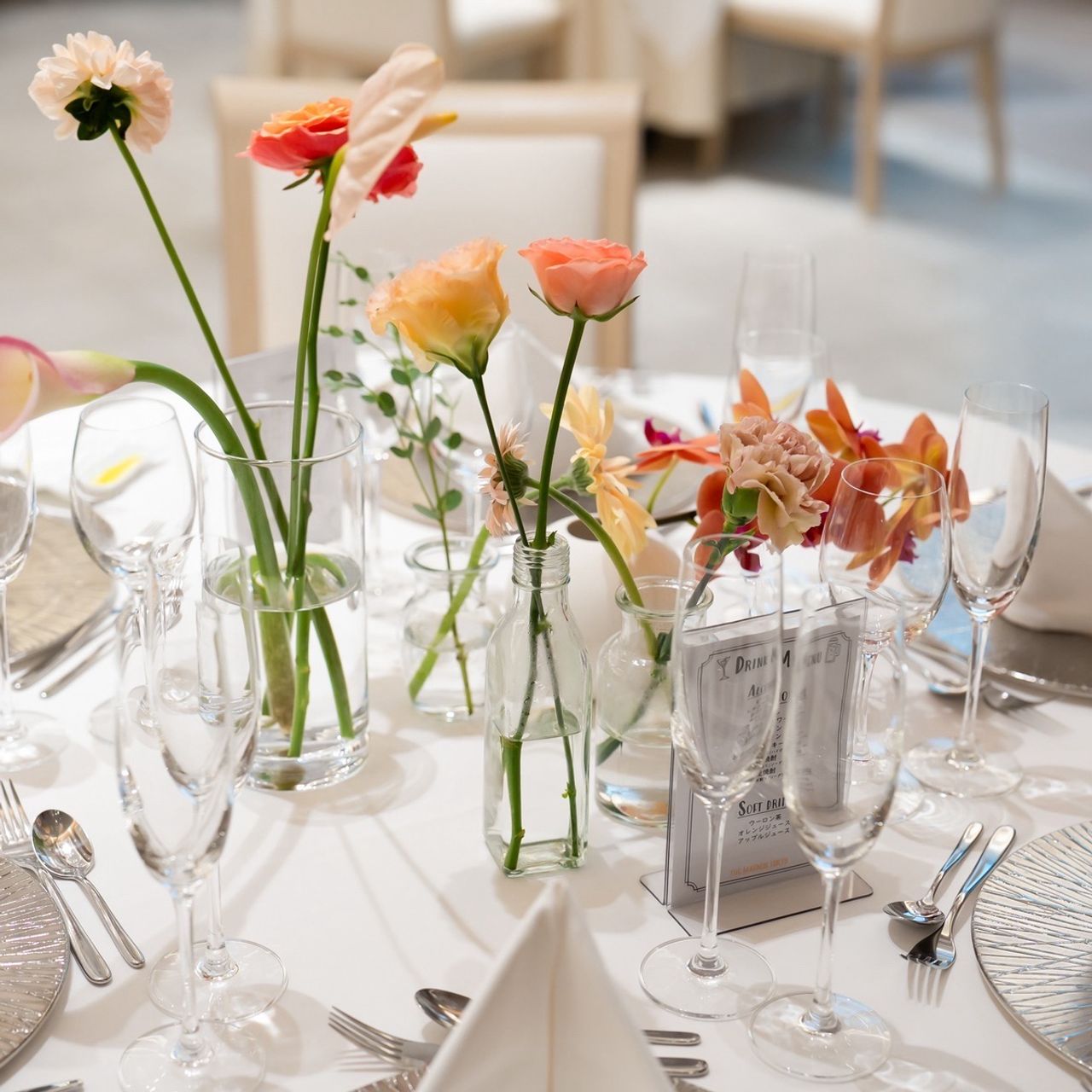 会場装花のお花は、すべてゲストの方にお持ち帰りいただきました。「可愛い」と感じて手に取ってもらえたのだと思うと、その光景も含めて、温かい思い出として心に残っています。