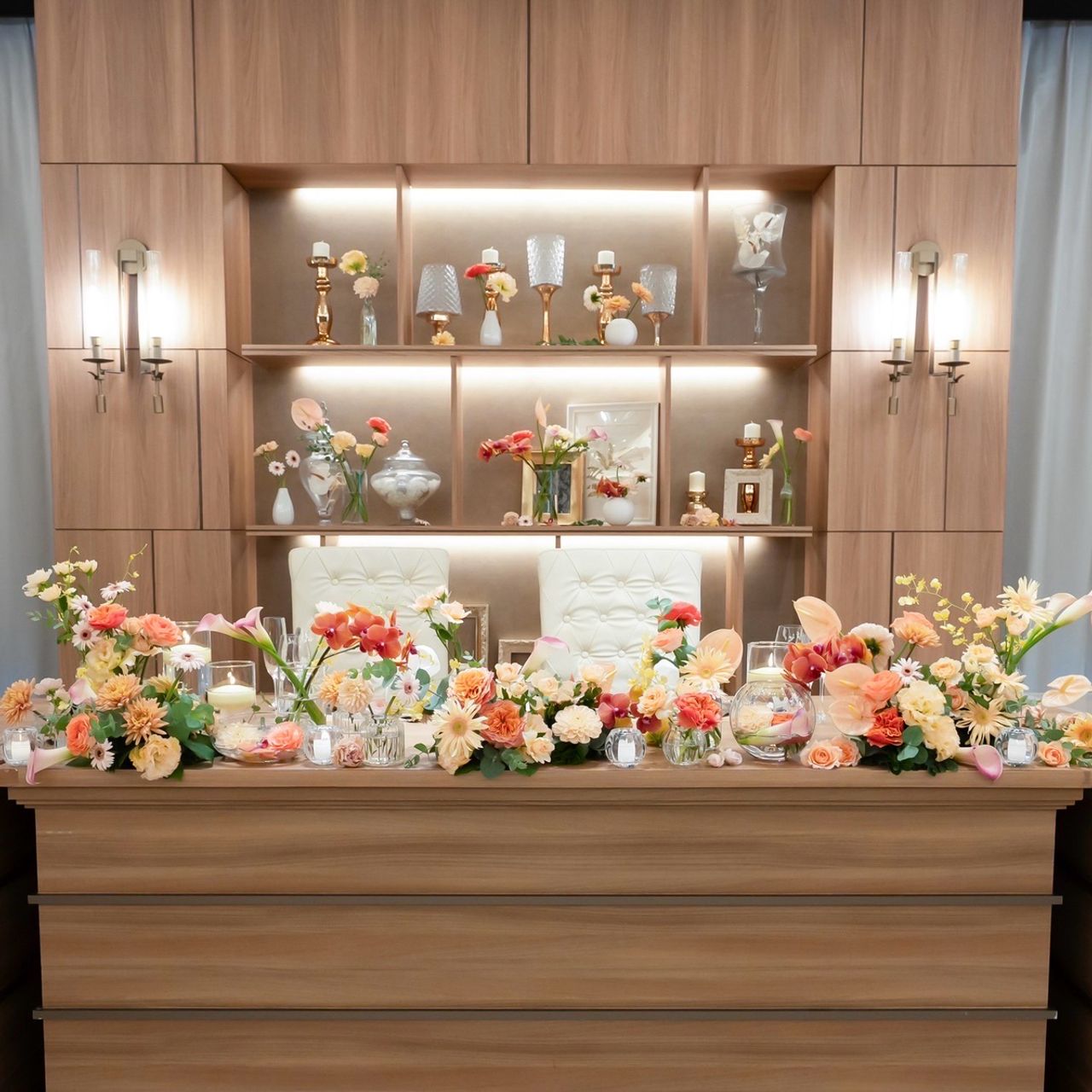 そのため、花材は指定せず、雰囲気のイメージをお伝えし、最終的にはすべてお任せしています。季節感を大切にしながら、私たちの希望を反映した装花に仕上げていただきました。