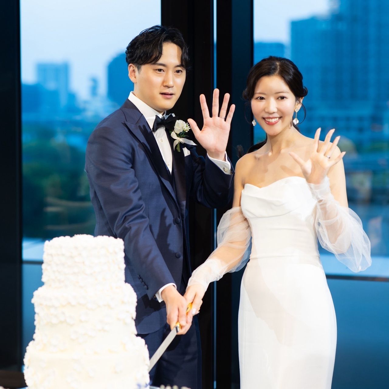 新郎側のゲスト席からは皇居を見渡すことができ「景色が素敵だった」と嬉しいお声もいただきました。
