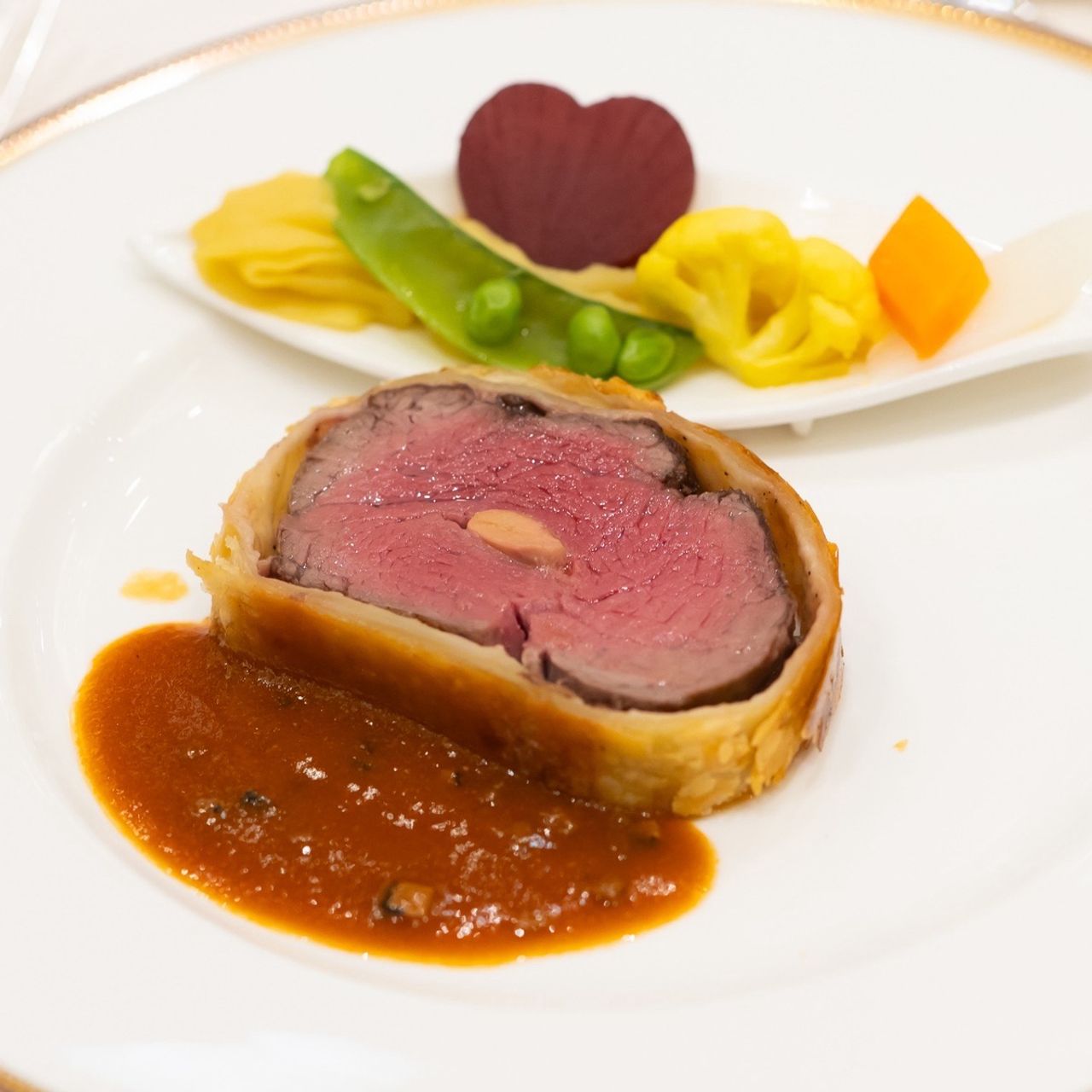 ダブルコンソメスープや舌平目のボンファムなど東京會舘を代表する伝統的なお料理をバランスよく楽しめる内容で、年代を問わず喜んでいただけるコースだと思い決めました。