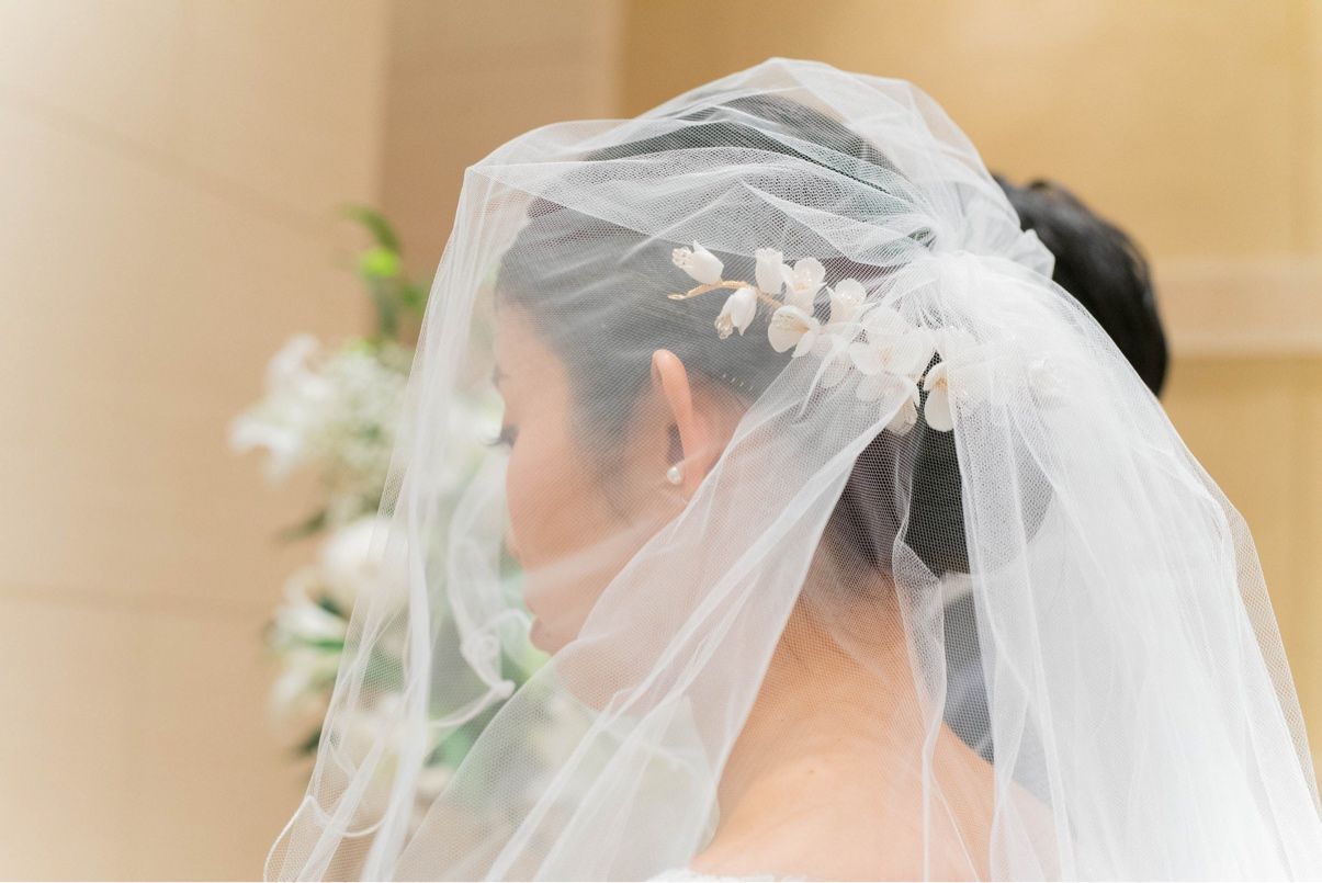 挙式のみ、Bride meさんのすずらんのヘッドドレスをつけました。