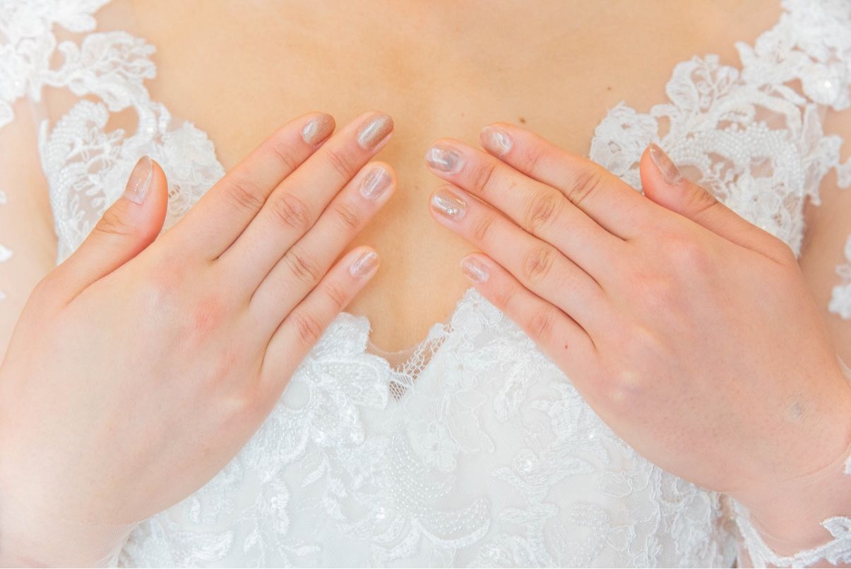 ピンクゴールド✕グレーのマーブルネイルです。ポイントで、3本はピンクゴールドのベタ塗りにしました。