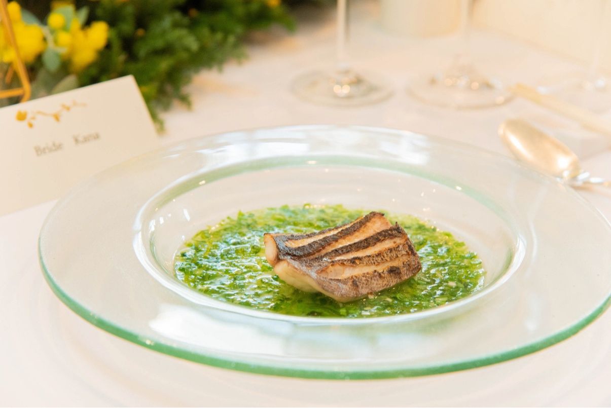 家族婚のためシェフのおまかせコースにしました。当日までメニューは内緒でしたが、シェフの和を取り入れたフレンチには全力で信頼していたので、不安はまったくなく、わくわくでした!試食で食べて感動した、黒イサキのソテーがメインで出て、改めて感動しました!