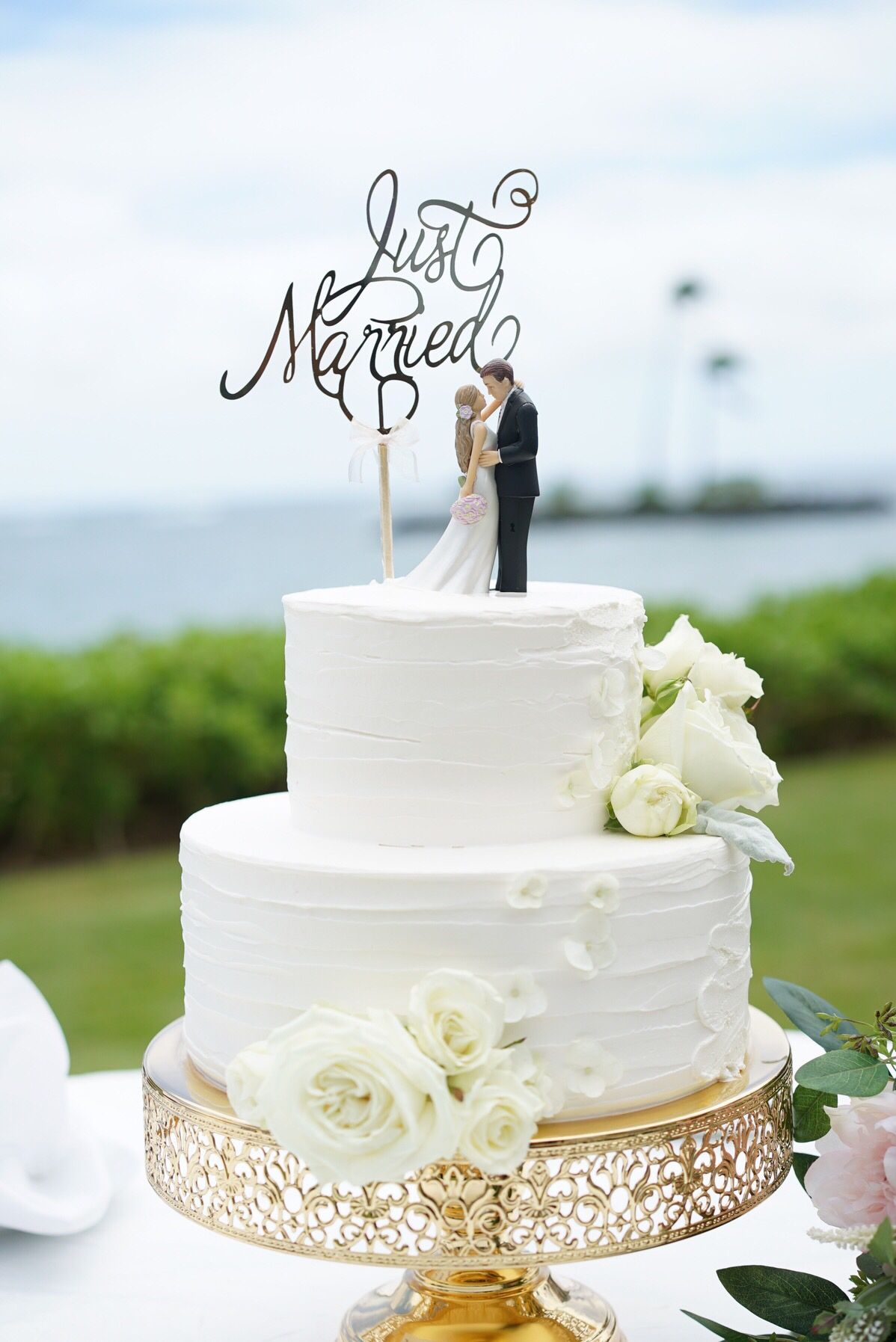 また2段に変更してケーキ台もカハラホテルのものだとシルバーなので外注してゴールドのものでお願いしました!