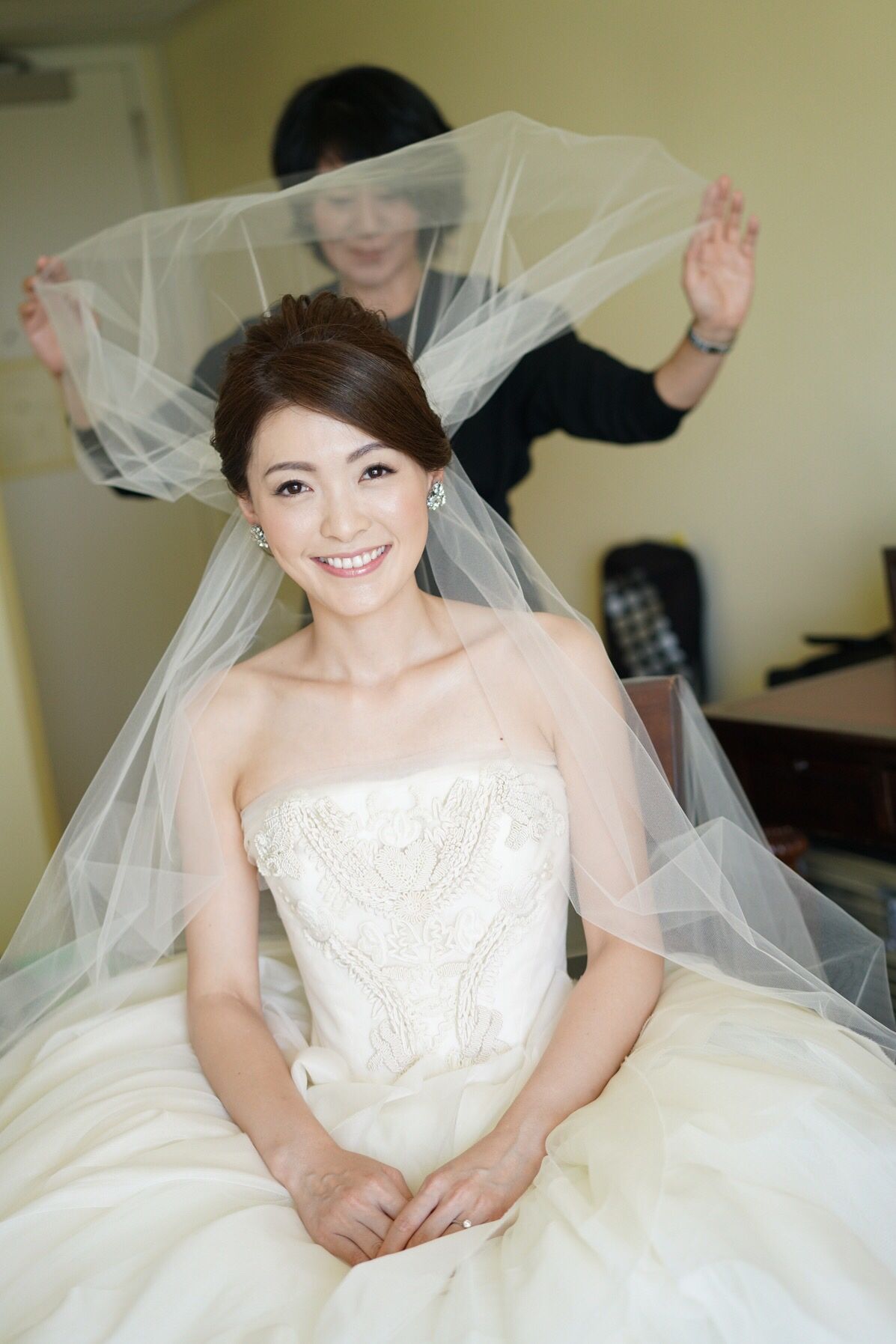 可愛いらしい顔立ちではないので、3段ベールはやめてリーゼルのボリュームもあるのでベールは、シンプルにショートとロングをあわせた2枚を着用しました(^^)