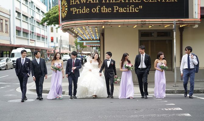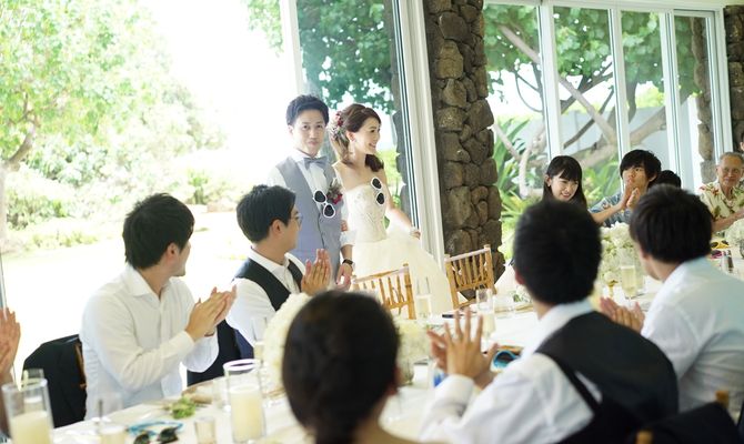 みんなで楽しく!来てくれた方へ思い出となるような式にする! これが一番でした(*^_^*)テーマカラーはハワイは白×グリーン×ゴールド 日本でのアフターパーティーはヨーロッパ風に!