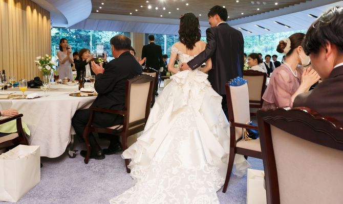 私の母と姉がともに神前式をしており、式場探しでは自然と和婚ができるところを探していました!!そんな中、フォレストテラス明治神宮の披露宴会場の欅を見学した際に、大きな窓から広がる緑が綺麗な自然の景色に一目惚れしてしまいました💓また、旦那と「アットホームな空間にしたいよね」と話しており、木のぬくもりが溢れるこの会場でなら和婚でも堅苦しくなり過ぎることなく、ゲストの方と楽しい時間が過ごせるイメージがすぐに湧いたことも決め手になっています!!