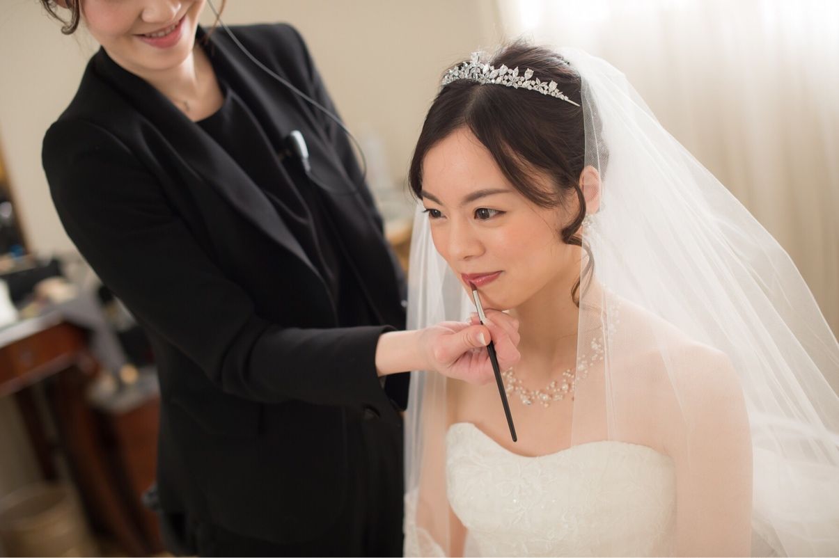 おだんごはずっとやりたかったのと、 ドレスがサイドにボリュームがあるのでその反対側におだんごをしてバランスを取りました。