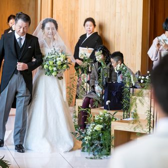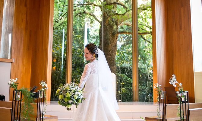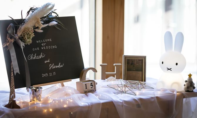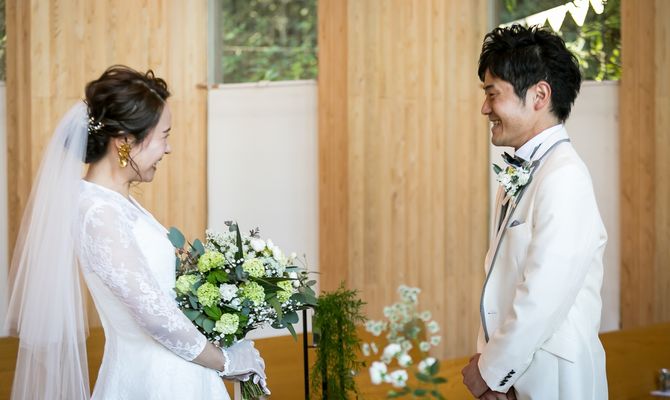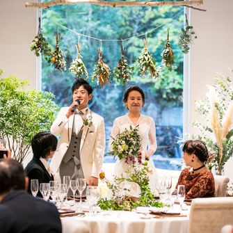 式場の雰囲気のような緑が溢れるナチュラルな感じにしました。アットホームでゲストの方との距離が近い式にしたいと思ってました!