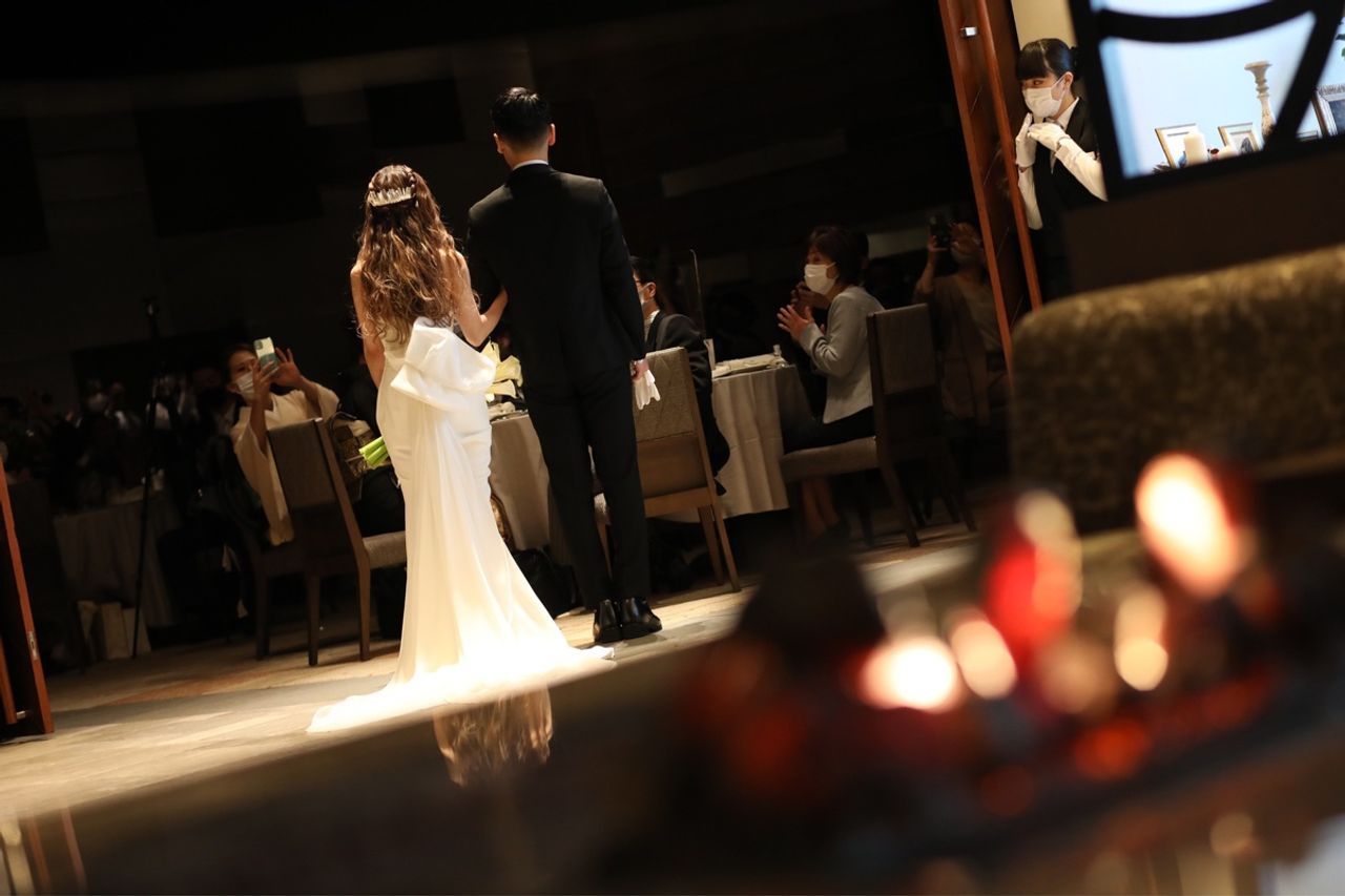 コロナが広まってしまったこの自由のない毎日の中で、少しでも参列したみんなに楽しいと思ってもらえるような式にしたくて、音楽や演出、映像を2人で考えました☺︎