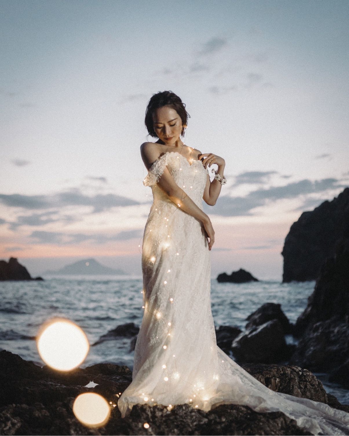 ソフトマーメイドになっていて、ゆるっと大きなリボンが腰にあるところがポイントですが、シンプルなのに女性らしくて純白さもあるところがとても好きです。
