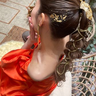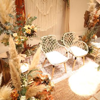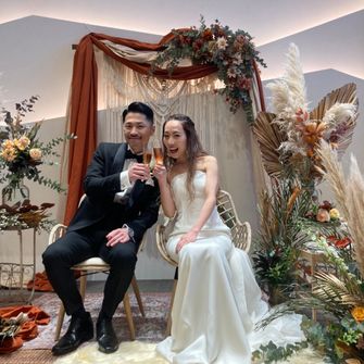 テーマを選んだ理由はシンプルにBohoスタイルがとても好きだからです。また好きな色であるテラコッタカラーとゴールドを差し色にして会場や衣装をまとめました。