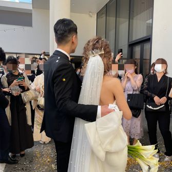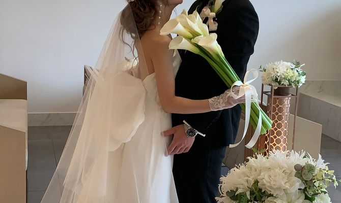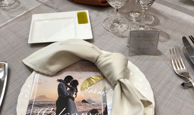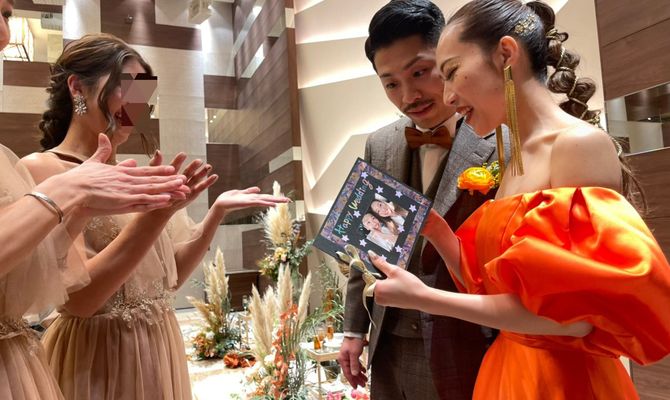 コロナが広まってしまったこの自由のない毎日の中で、少しでも参列したみんなに楽しいと思ってもらえるような式にしたくて、音楽や演出、映像を2人で考えました☺︎
