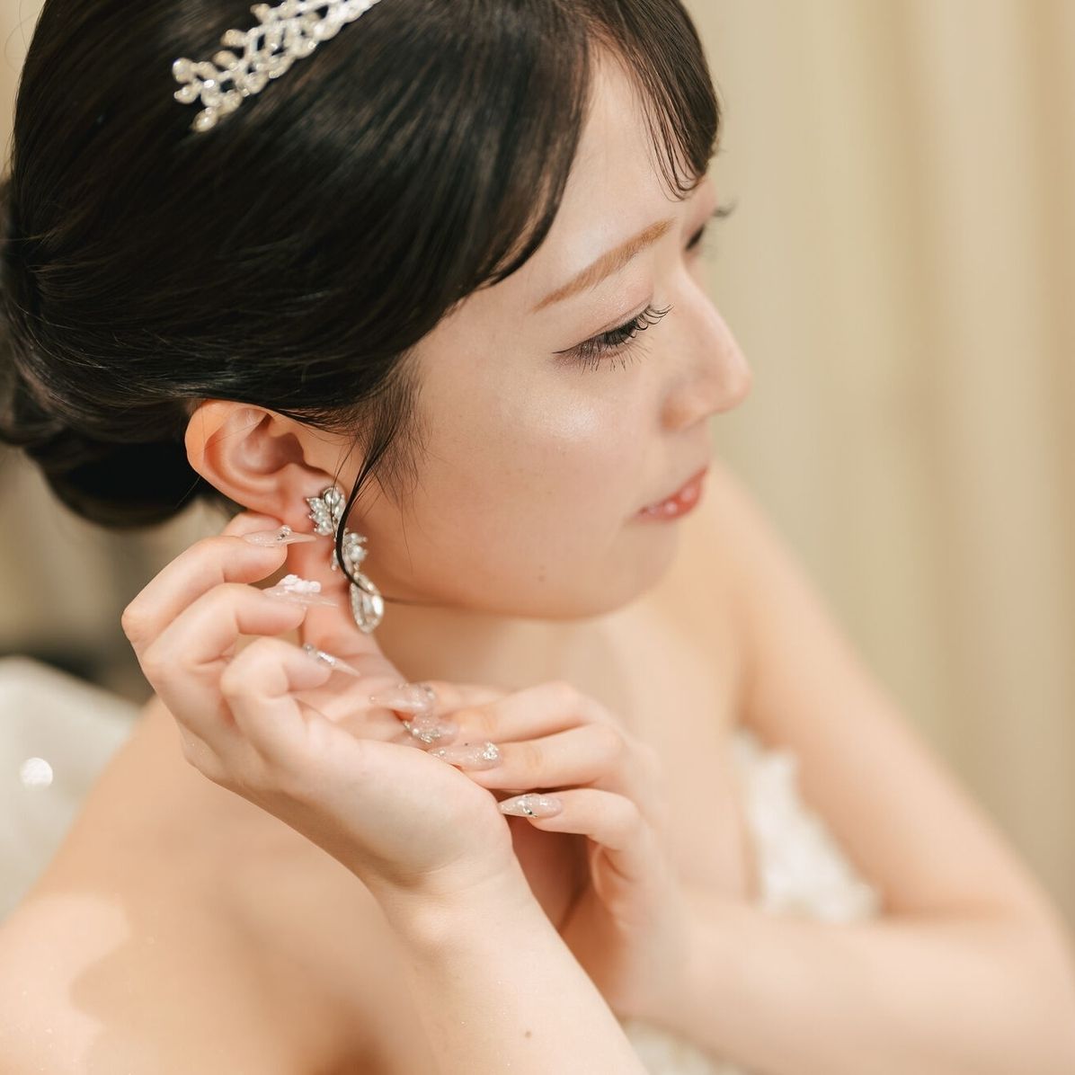 挙式の際はキラキラの大きめなイヤリングをつけて、大人っぽくしました✨
