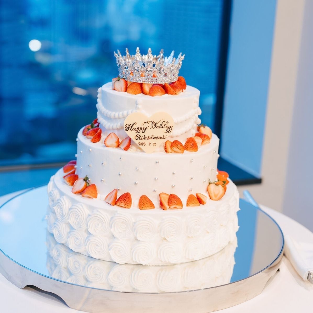 クラウンを載せたかったことに加え、シンプルだけど可愛らしさも出るよう、3段で横のデザインをそれぞれ変えてほしいとお願いしました。