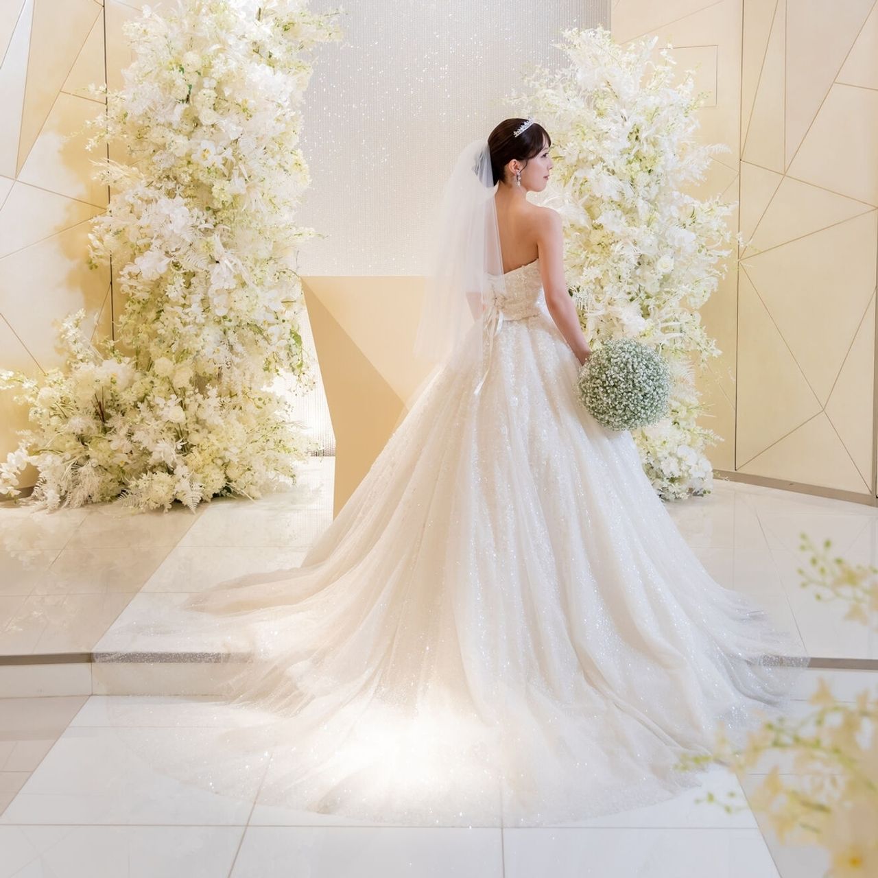 元々キラキラのドレスが良く、こちらのドレスはキラキラのデザインに加え、お花もついていてとっても可愛かったです🤍🤍