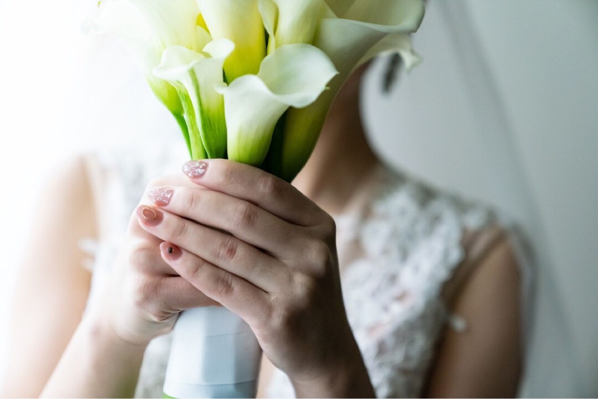 ウェディングドレスと、カラードレスどちらにも会うように、ピンクベージュを主にアートデザインをしていただきました。