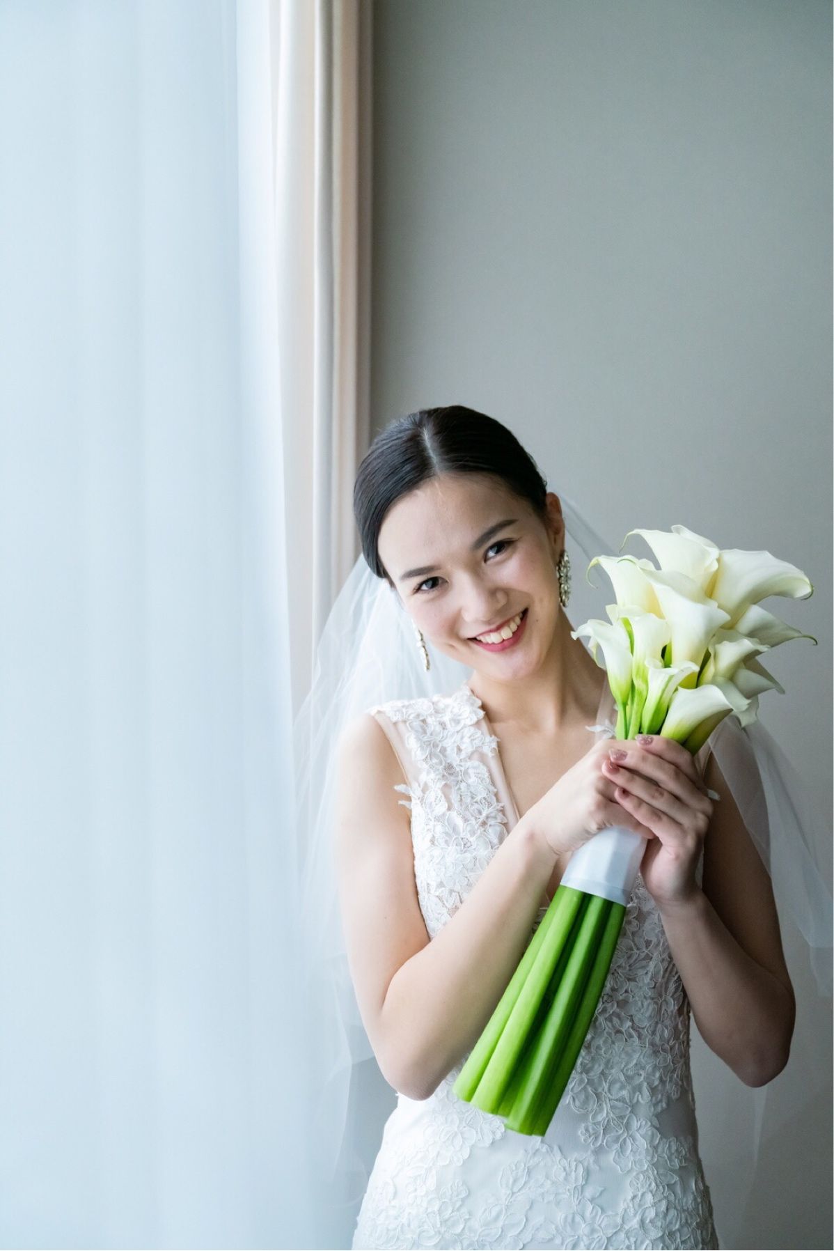 挙式は、細身のドレスに合わせて、ヘアもぴたっとクラシカルな感じにお団子にしました。