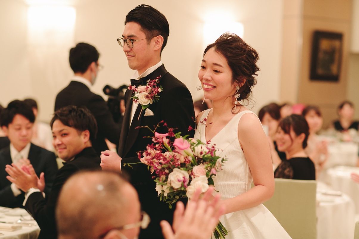 2着とも白いドレスだったので、挙式・披露宴入場・お色直しのそれぞれのシーンでイメージが変わるようにお願いしました。