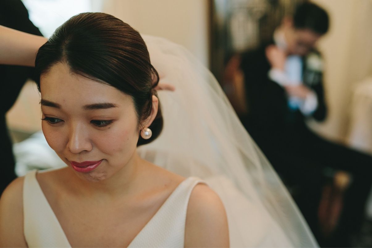 挙式時には母に貰ったパールのピアスを、披露宴入場時にはキラキラの揺れるピアスを、お色直し時にはゴールドのピアスを合わせました。