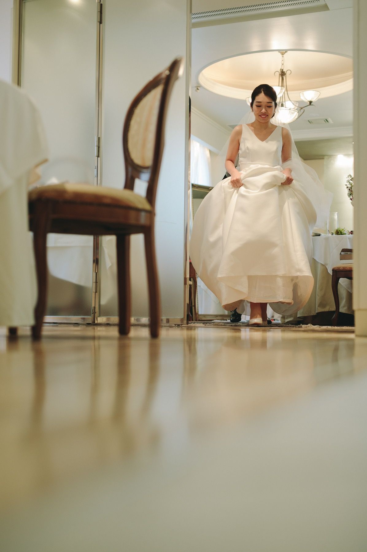 綺麗なシャンデリアが特徴の披露宴会場です。高級感がありつつもアットホームな雰囲気を感じることができました!