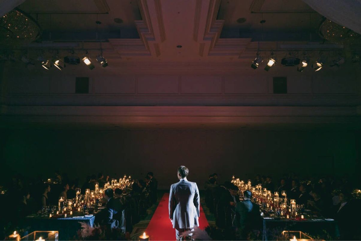 披露宴は、レッドカーペットの表彰式をイメージしてバイリンガルMCに司会を!披露宴自体は海外の晩餐会をイメージしました!
