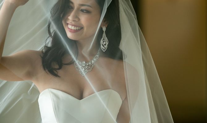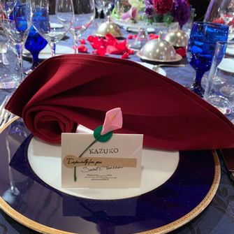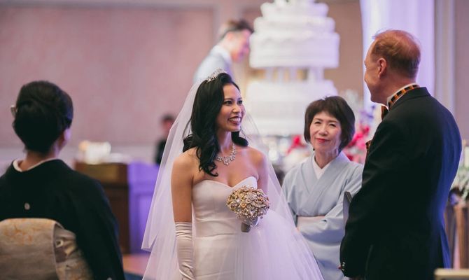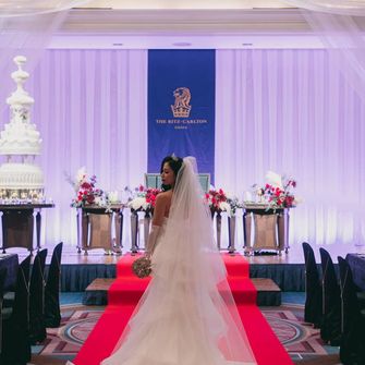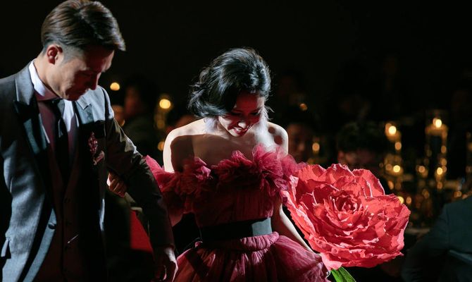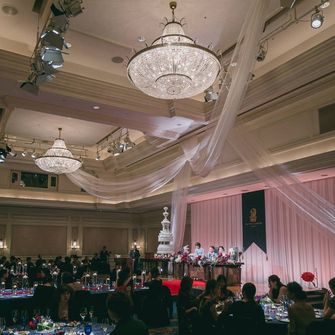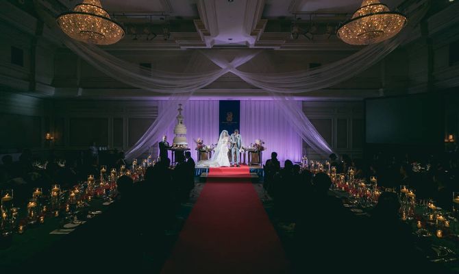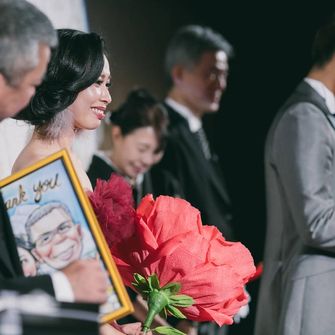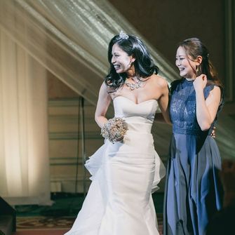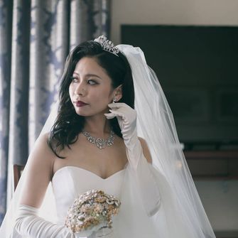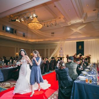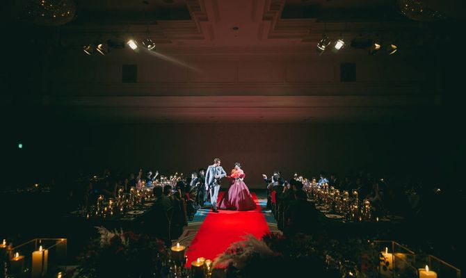 ドレスやヘアメイクは海外の映画祭のレッドカーペットをイメージしてチョイスしました! 披露宴は、レッドカーペットの表彰式をイメージしてバイリンガルMCに司会を!披露宴自体は海外の晩餐会をイメージしました!