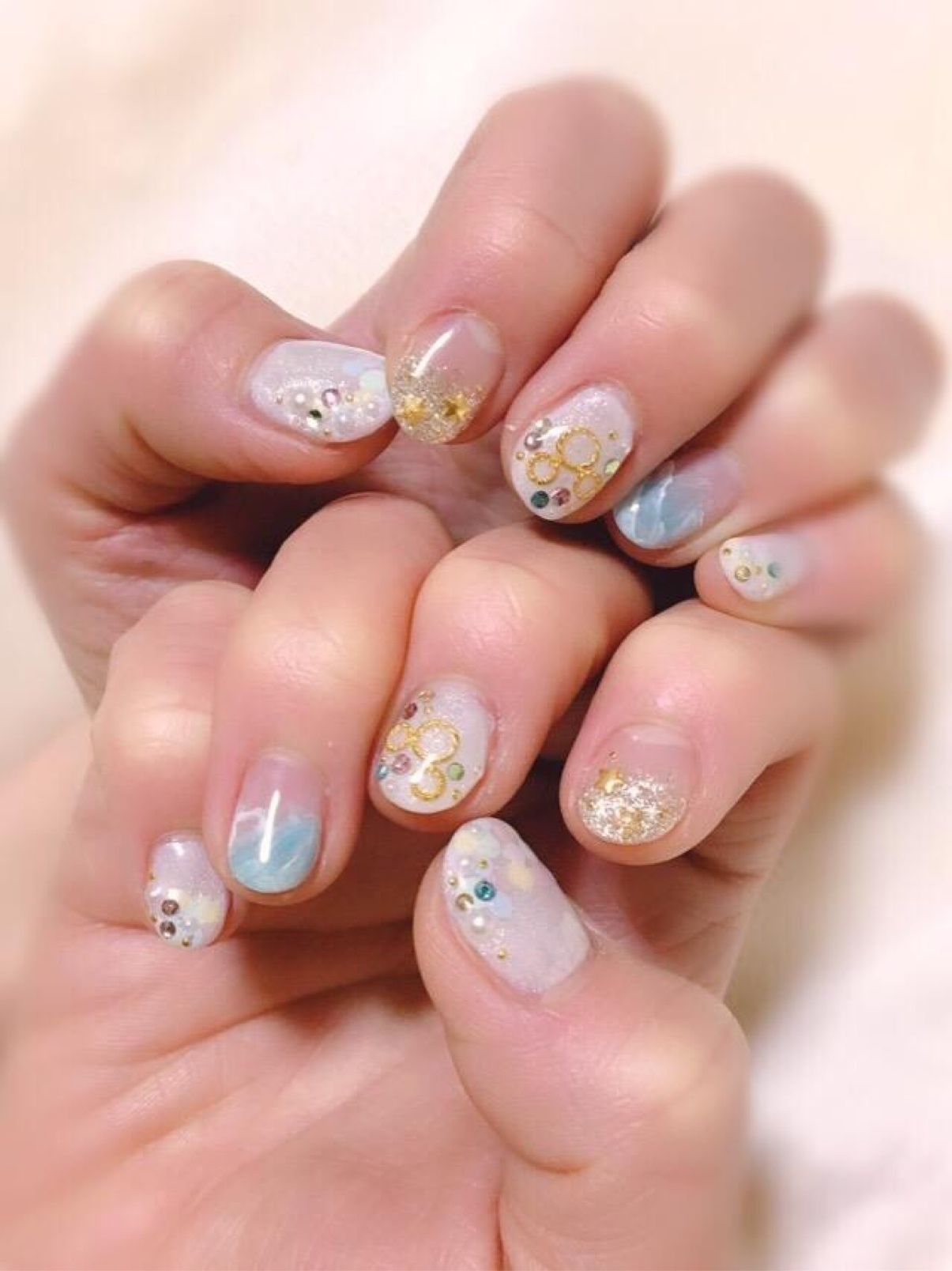 ディズニー風&リゾート感が出るようミッキーや星、海を描いたネイルにしました。