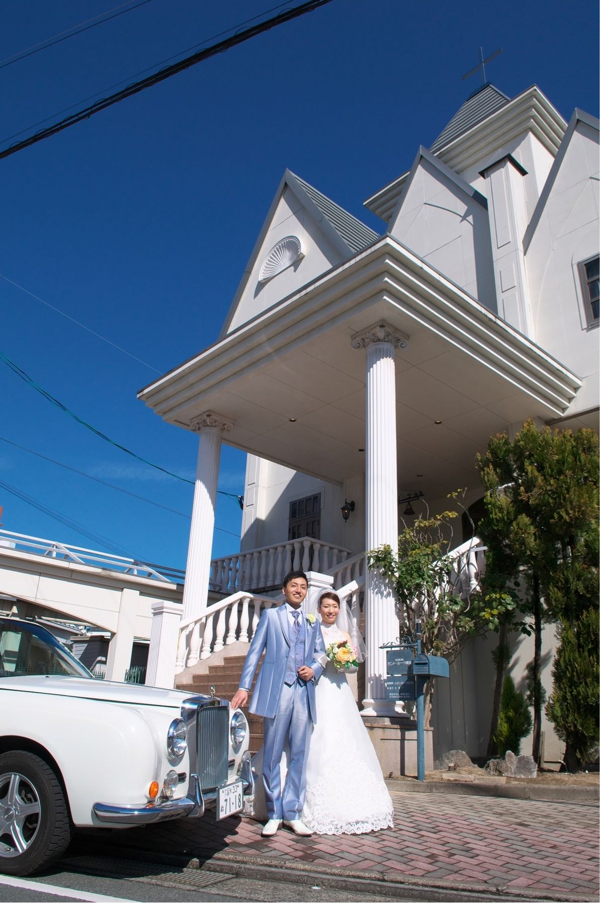 教会の雰囲気に合うクラシカルなウェディングドレスを選びました。襟がツーウェイタイプだったので、挙式ではアメリカンスリーブ、披露宴ではオフショルダーにして、雰囲気を変えられたのも良かったです!
