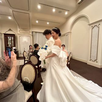 アニヴェルセル白壁の決め手はバージンロードとお料理の美味しさです。ロイヤルブルーのバージンロードがとても印象に残ったのと、見学の際に試食させていただいたお料理がとても美味しく「ここならゲストに満足のいくおもてなしができ、皆が笑顔で過ごせる」と直感し決めました。