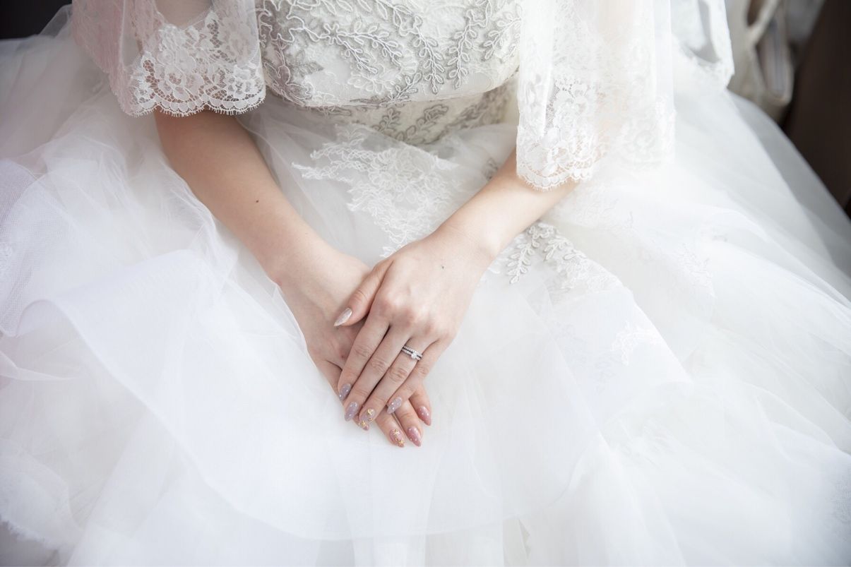 理想はディズニーの第一世代Princessのような可愛らしくて華やかなお姫様。プリンセスライン一択で、シルバーの刺繍が映えるボリューミーな1着を選びました。存在感抜群で、写真映えも意識◎