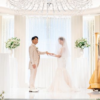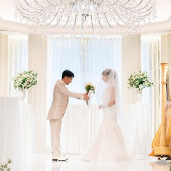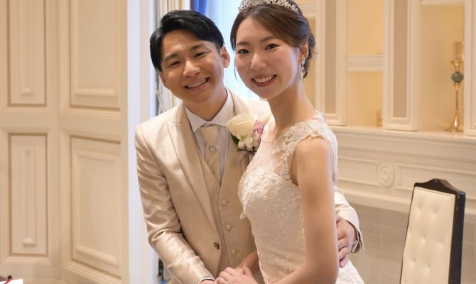 式場選びの際に決め手となったのは、白を基調とした会場で大人っぽい雰囲気の結婚式をイメージできたことです。他にも、京橋駅直結で東京駅から近くアクセスが良いこと、和食と洋食が融合されたオリジナリティ溢れる創作料理が魅力的なこともポイントになりました。