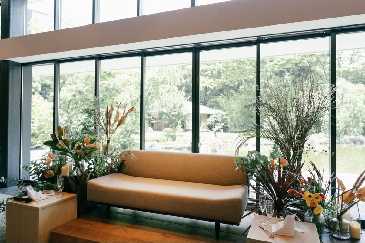 披露宴会場に選んだORIENTAL ROOMは、高砂の後が一面窓で、池やチャペル、緑が見えてゲストから見る景色が凄く良かったのが決め手でした。