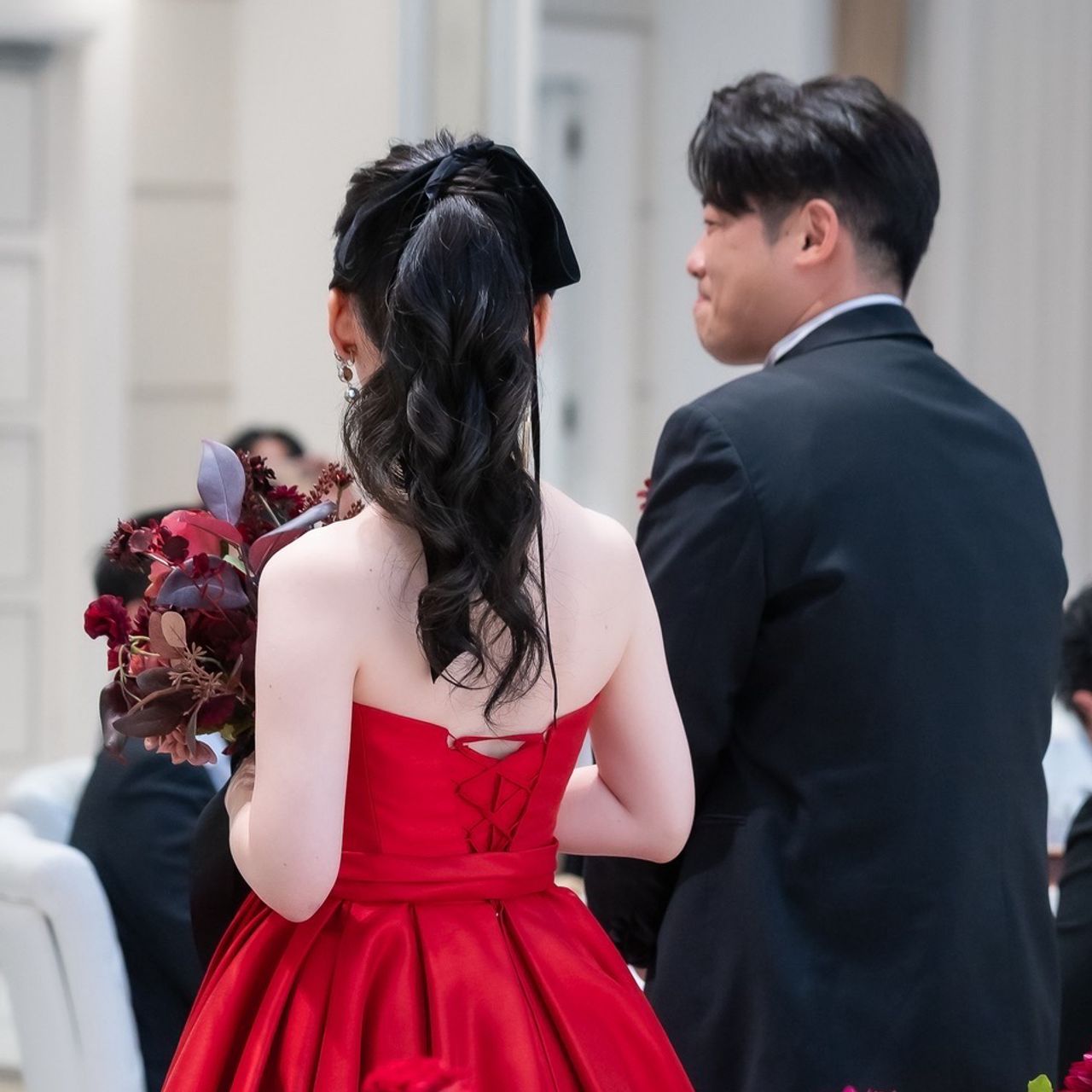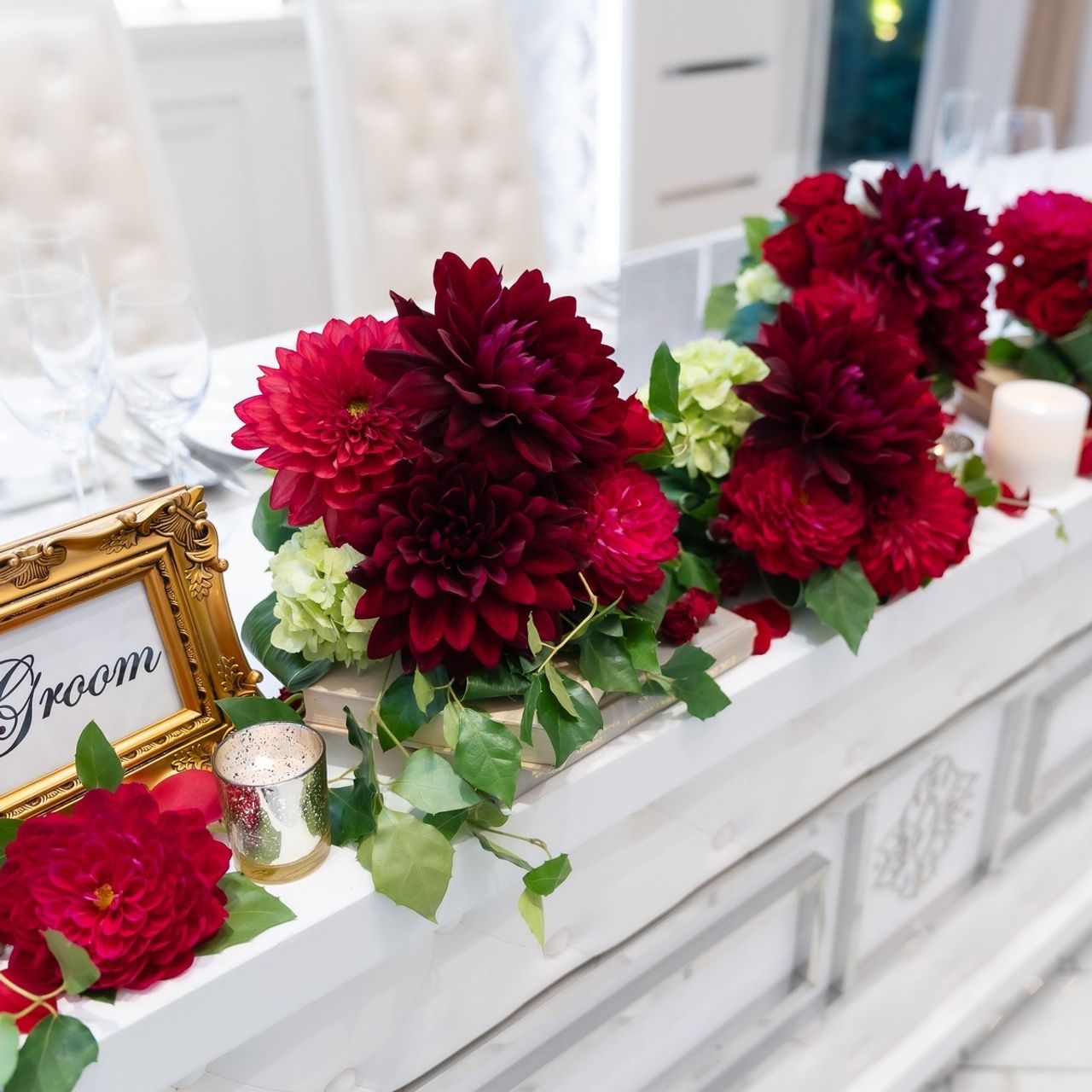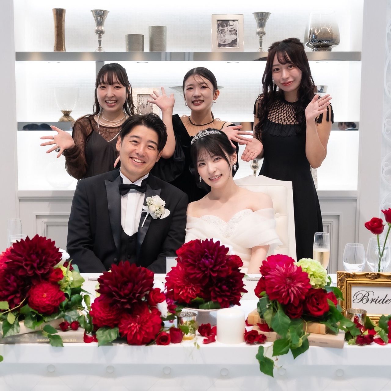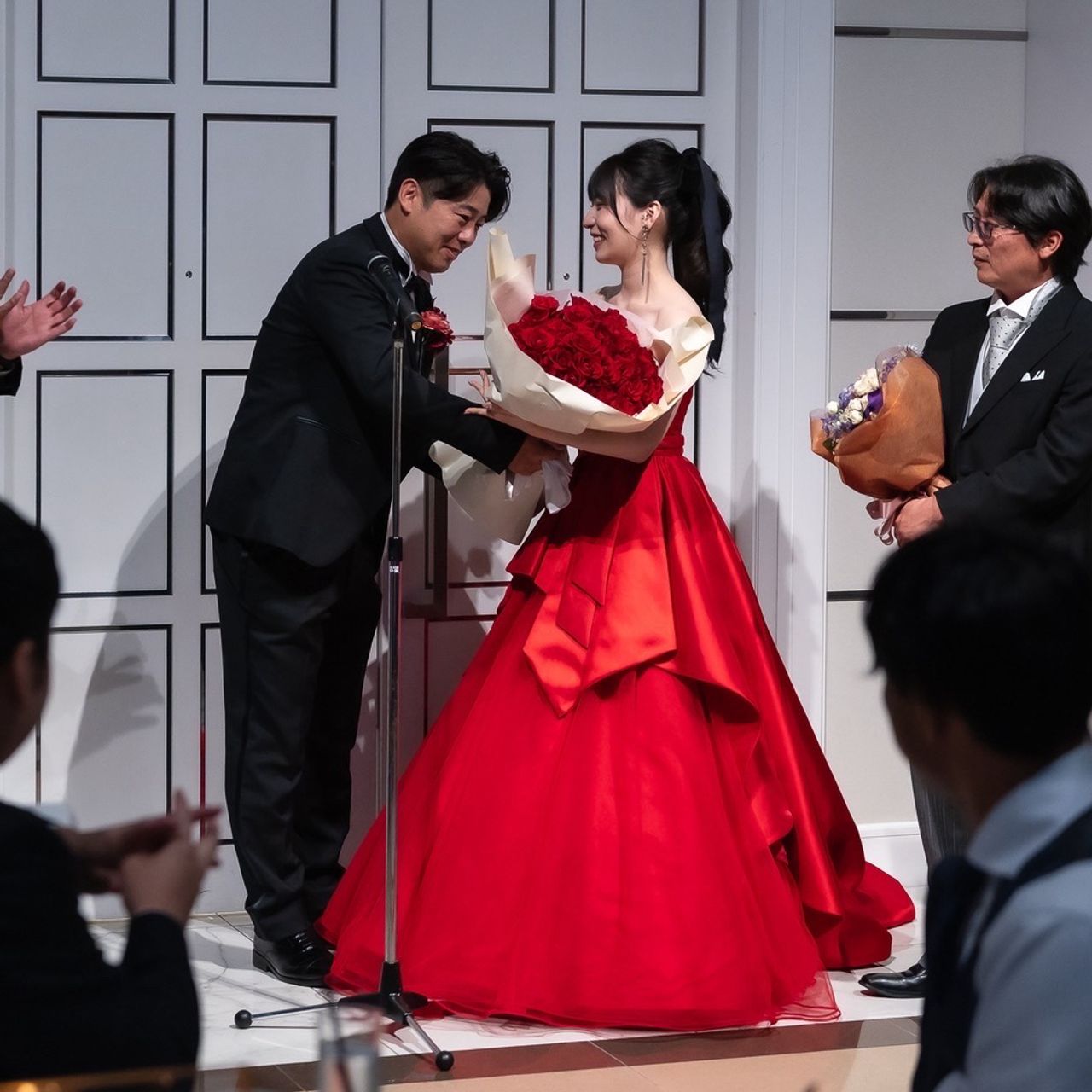 2着目の赤いドレスがお気に入りだったので、それに合わせた装花にこだわり、赤いお花をメインに使いました。