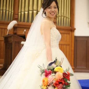 披露宴はアットホームに楽しめるものが良いと思っていましたが、挙式は厳かな雰囲気で行える、ステンドグラスのあるチャペルがいいなと思っていました**